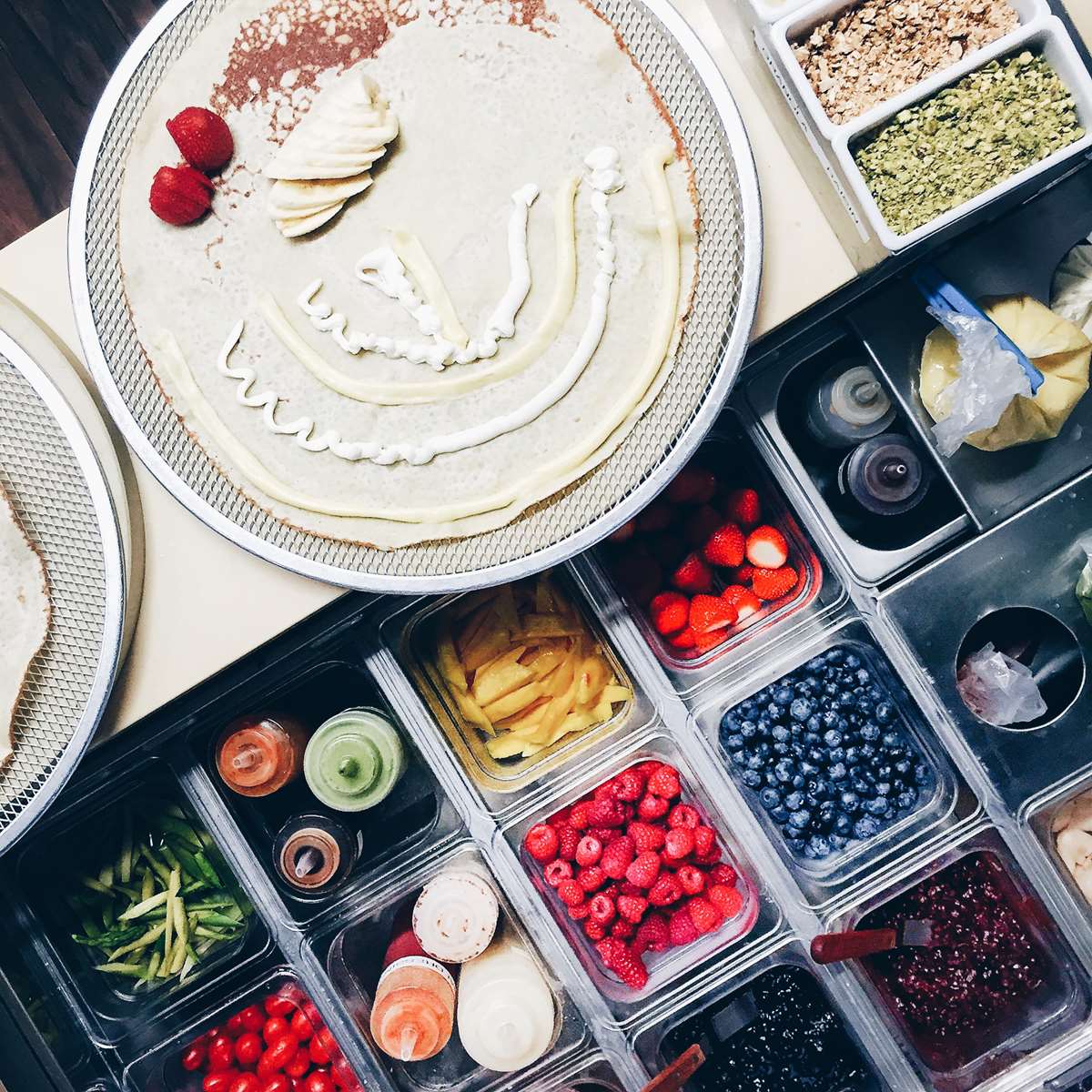 Our experts skillfully pour the exact amount of batter, and the placement of each ingredient to produce the perfect crepe. Each bite, no matter sweet or savory, is identical and bursting with fresh exquisite flavor.